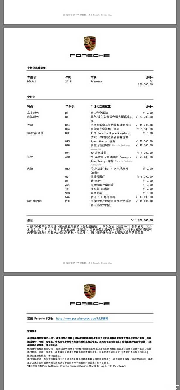 都说男人有南天白云情结和保时捷情怀,继2014年提了宝马X4完成了第一个目标后,4年的奋斗终于在2018年完成第2个目标保时捷,为什么选帕拉梅拉,因为她迷人的青蛙眼,因为她销魂的升降尾翼,因为她科技感满满的中控,因为她让人充满战斗力的排气声浪,等等...........令人惊喜的事情就是因为关税调低导致帕拉梅拉由108.8万降到99.8万直降9万大洋