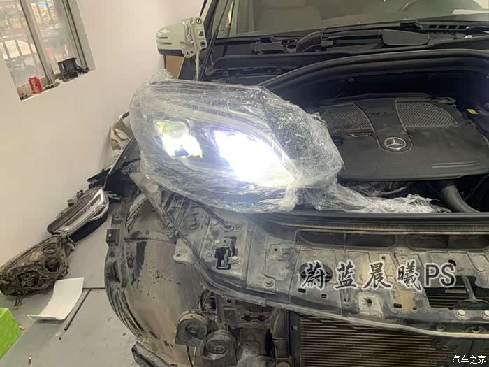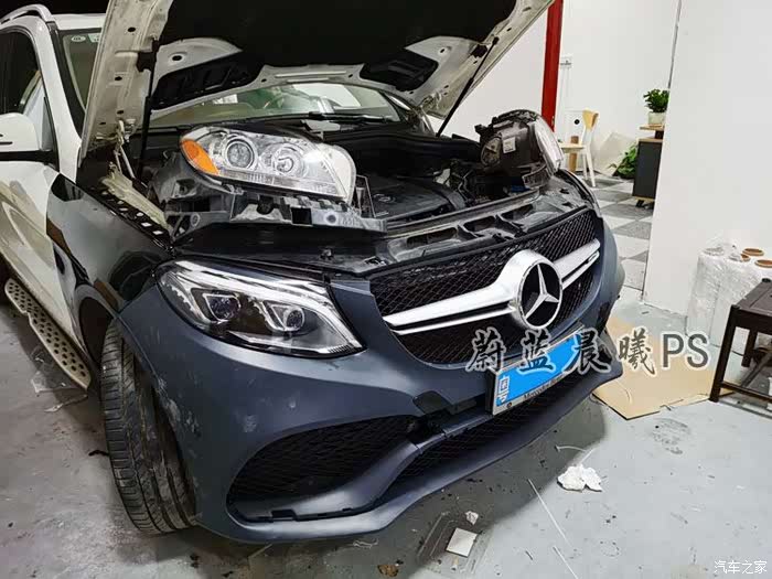 听老板讲,叶子板机盖是必须换的。因为大灯新款跟老款大小外观不一样了,所以跟大灯有直接联系接触面机盖和叶子板必须换。(车子拆的乱七八糟,看着它没改之前,这是ML还是GLE?),大灯确实不是我们车主能理解的,不是直插就能使用,还得连个电脑操作一下。所以说专业事情交给专业人士弄,是没错的。很久以前我改个副厂包围,给个普通维修厂安装,师傅死活说我买的产品不行不好安装,叫我退了,他给我从新买!我没听他说,我直接换了,去了介绍的店,别人一下子给我安装好了!技术活就是技术活。!