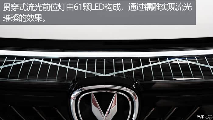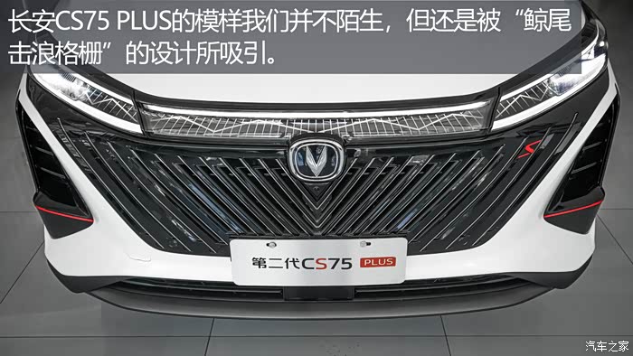 我们先从外观说起,“鲸尾击浪格栅”是第二代长安CS75 PLUS的专属设计,其中的每一个“V”型设计都源于长安LOGO中的46.7度夹角。第二代长安CS75 PLUS的智慧就藏在这个格栅里,因为新车带有主动进气智能格栅,可以自主调节格栅开闭,具体工作原理我们不在这里赘述了。