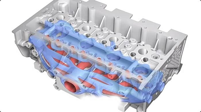 排气歧管集成在缸盖内,废气的路程长度也缩短了,废气也能更快地到达涡轮器中,这样涡轮的迟滞性得到了改善。而在发动机高负荷时,冷却液也可以对车辆的排气歧管起到降温的作用,当排气温度降低之后,尾气中的污染物含量会明显降低,这有助于发动机满足更严苛的国六环保法规,可谓一举多得。