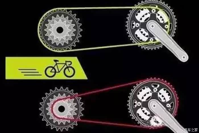 关于行星齿轮组的结构组成我们已经了然于心,那么接下来我们就讲讲它是如何实现减速增扭和增速减扭的。相信大家都骑过能变速的自行车吧,当我们爬坡的时候往往会把前面与脚踏连接的齿盘换到最小直径,后面与车轮连接的齿盘换到最大直径,这样就可以相对省力的爬坡了;而当我们在平路骑行想要获取最高速度的时候,往往会把前面的齿盘换到最大,后面换到最小,这样我们在有限的踩踏频率下就可以获得更快的骑行速度。这其中的变速原理说白了就是不同齿轮之间齿数的比值,当主动轮(与脚踏连接)选择直径大齿数多,从动轮(与车轮连接)选择直径小齿数少的时候,主动轮转一圈,从动轮可能就要转好几圈,相反也是如此。