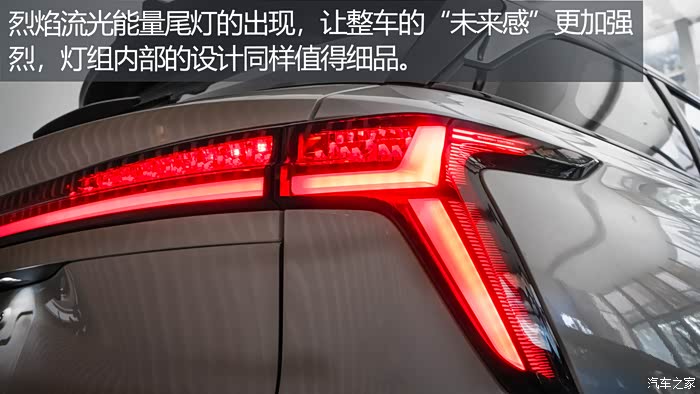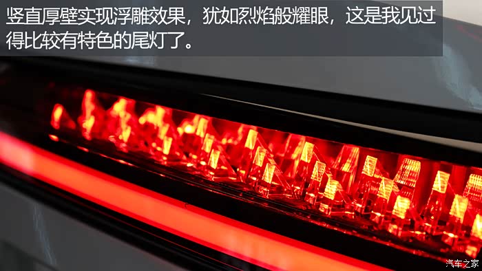 第二代长安CS75 PLUS的尾灯采用了贯穿车尾的设计,让你每次踩下制动踏板后都能对后车起到更好的警示效果。全LED贯穿式组合后大灯,由62+132+62颗超红光LED构成,结构上采用竖直厚壁实现浮雕效果,犹如燃烧的火焰。