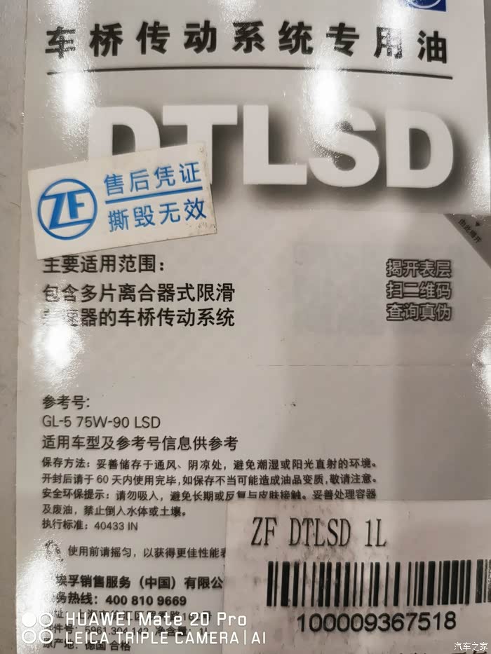 16款28T后差速器油用采埃孚的75W90 DTLSD可以吗