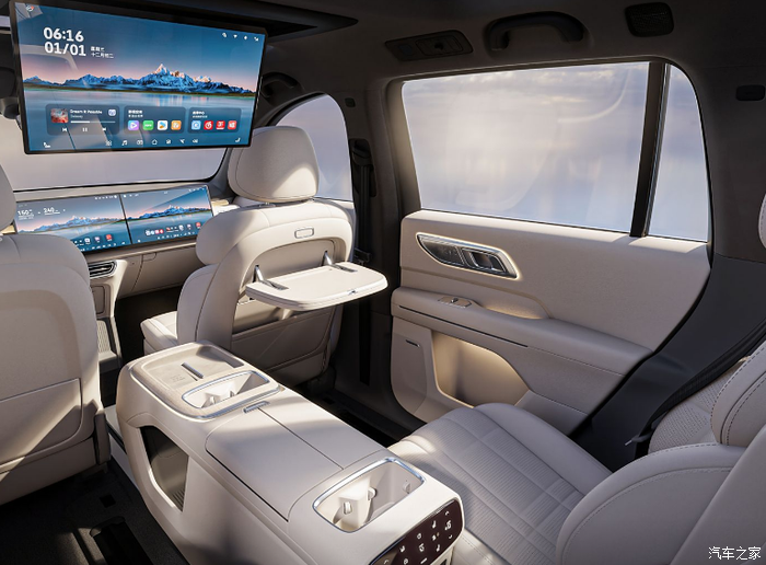 2.内饰。奕派 008 就不说了,反正我个人还是很喜欢这个内饰的,但是他们都说这个内饰有点老气,难道我是中年人的身份暴露了?哈哈哈。不过需要吐槽的就是这个车的储物空间真的是少了点,我直说一个点,纸巾盒我放哪儿都感觉不方便。烦得很。哦,还有一个就是8155的车机芯片,如果是2024年我觉得他还是够用的,但是现在已经2025年了,我只能说落伍了。 深蓝 S09 车内采用浅色搭配,看着也还行,比较简约、时尚,和奕派 008 是两种不同的风格。嘿,你猜怎么着?008上面一直被吐槽的移动冰箱,到S09这儿直接来了个前后排移动中岛,只能说设计很新颖但是一点都不实用。