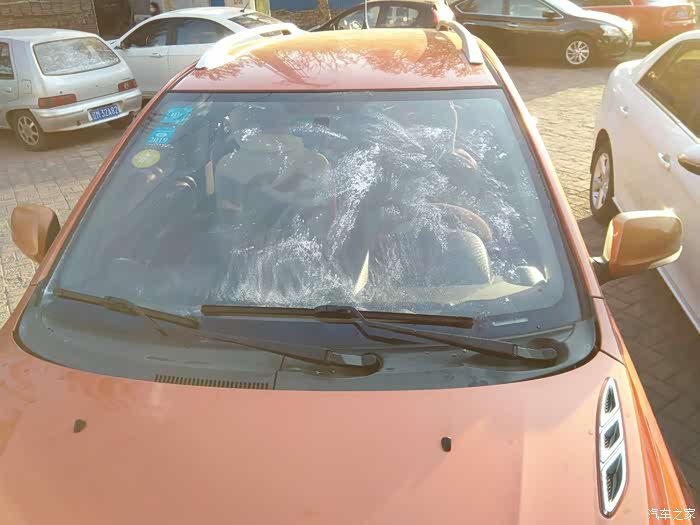 车辆自身喷水雨刷刮除灰尘测试完美。看着清晰度不知道的还以为没有玻璃呢。