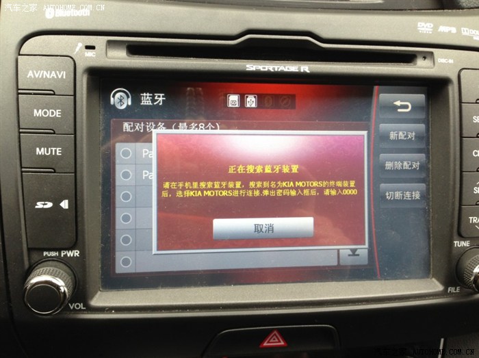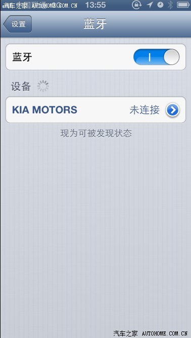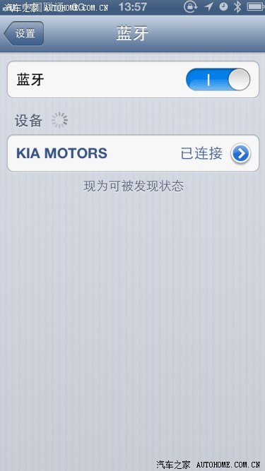 找到后打开蓝牙开关即可,在设备列表里面会出现KIA MOTORS的设备,点击它后,会提示输入密码,这时候输入0000,就能连接成功了。