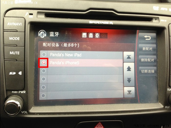 上面那个是我曾经连接过的iPad3,以后大家再打开车子和手机的蓝牙后,就可以自动连接了,不用重新配对了,比较省心。按照屏幕的提示,最多连接上8个设备,呵呵,车子里面其他人的也可以连接上去哦!