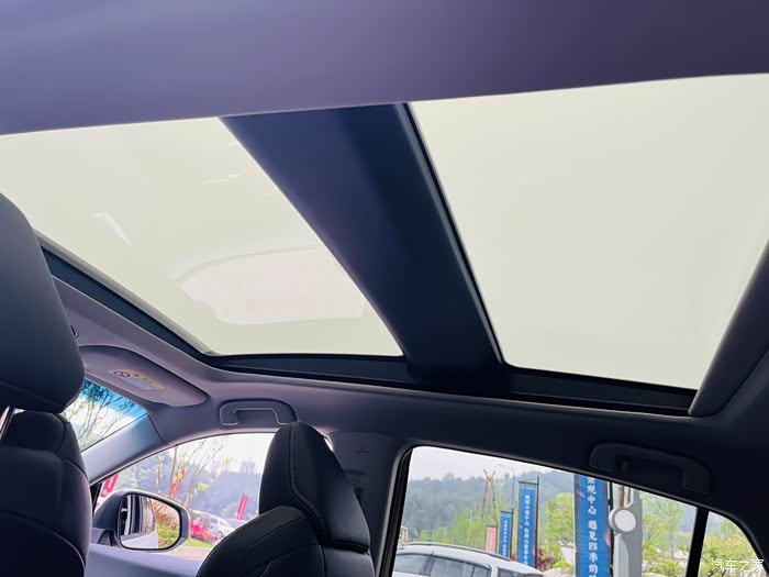 溜背车身造型让整车看起来运动又时尚,内饰大面积的皮质包裹显高级感,还有9个JBL音箱。全景天幕,虽然不能打开 ,但仍然能感受蓝天白云。