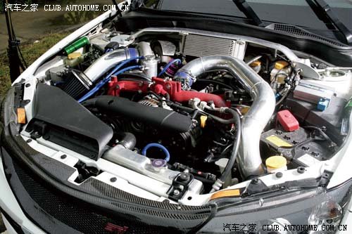 | GRF所搭載的EJ25引擎,原廠出力可達300hp/41.5kgm的水準,而動力改造時最大的罩門在於監理系統上。 |