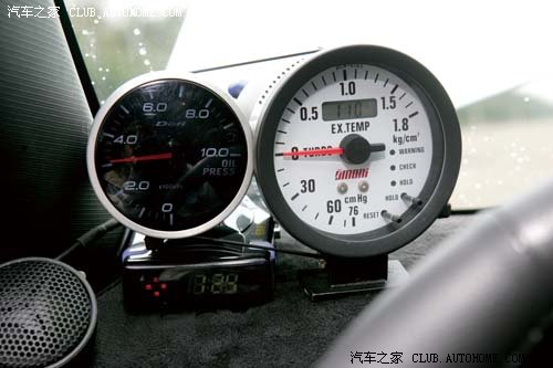 | 中控檯上的Defi油壓錶與Omori增壓/排溫錶,成為車主監控引擎工作狀況的利器。 |