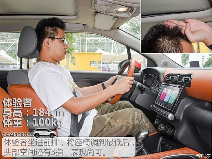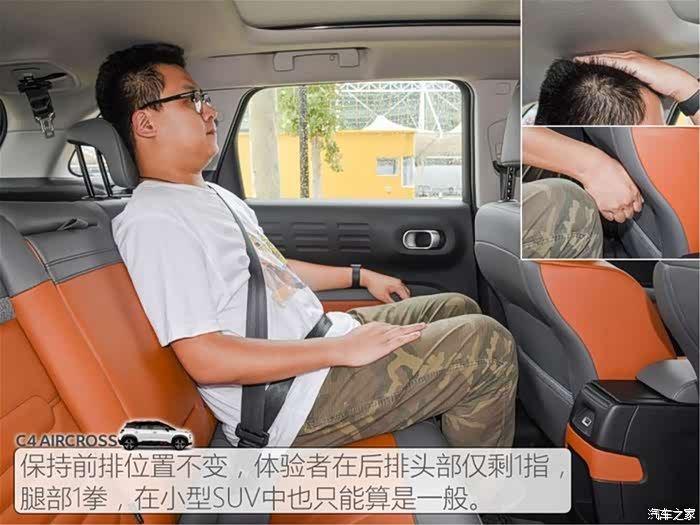 身高184cm的汽车之家编辑,这身材还是挺有挑战的。落座前排并将座椅调至最低后,其头部空间为三指;保持前排座椅不动来到后排,同一体验者的头部空间为一指,腿部空间则为一拳,作为一款小型SUV,表现已经很难得了。