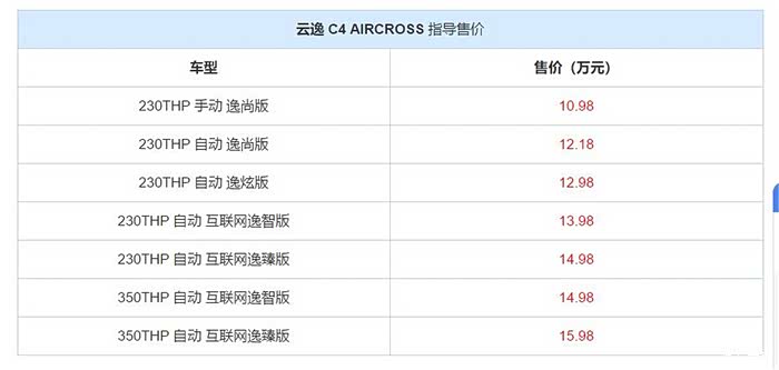 昨天晚上,期待已久的云逸C4 AIRCROSS终于上市了。一共1.2T/1.6T两种动力共计7款车型,指导价格区间为10.98-15.98万元。