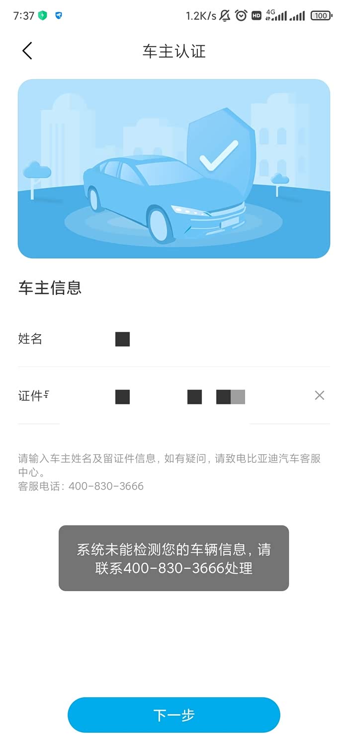 昨天去4s店提了现车,车主认证一直提示未检测到车辆