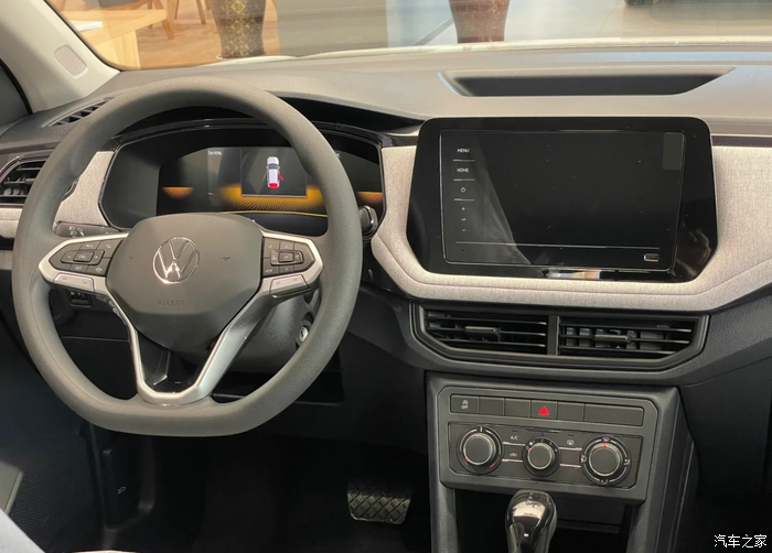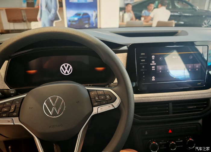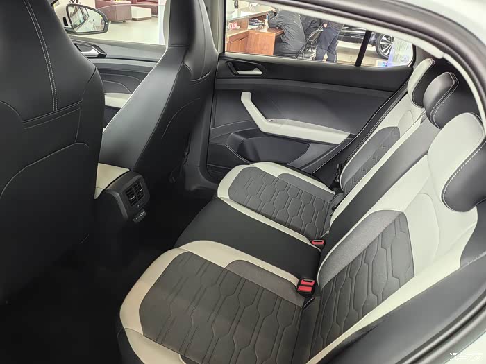 坐进车内,还是非常熟悉的大众传统设计布局,一看就是很大众。不过虽然塑料件用的比较多,但细节上的处理却让人眼前一亮。车内主色调为黑色,缝线、饰条选用与车身同色系的亮色,营造出活泼的氛围,与外观风格相呼应。真皮方向盘握感舒适,多功能按键布局合理,操作方便。皮革座椅质感不错,包裹性出色,长时间驾驶也不易感到疲劳。 9.2 英寸中控屏显示清晰,响应速度还是可以的。虽然车机系统没有过于花哨的功能,但支持多种手机互联方式,特别是支持carplay,满足了日常使用的便利性需求。不过,内饰部分塑料感还是比较强的,相比更高价位车型在材质用料方面还有一定提升空间。