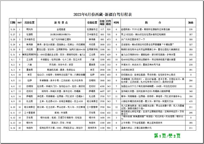 虽然2020年去过一次西藏,去年又做了新疆自驾路书,自己没去成,今年还是按原计划做新疆自驾准备。但新疆路书远比东北和西藏的路书难做,东北、西藏线路比较单一,规划好住宿点就行了。新疆地域辽阔,景点众多,季节不同景色差别很大,新疆的自然风光奇特,南疆的非洲风光,北疆的瑞士风光,这些只有在新疆可以看到,因为假期有限,必须有所取舍。借用网友自驾游帖子的信息,按自己的想法安排了行程,做了路书。这样才能让旅途心中不慌和随机拓展乐趣,让旅途更加的完美。