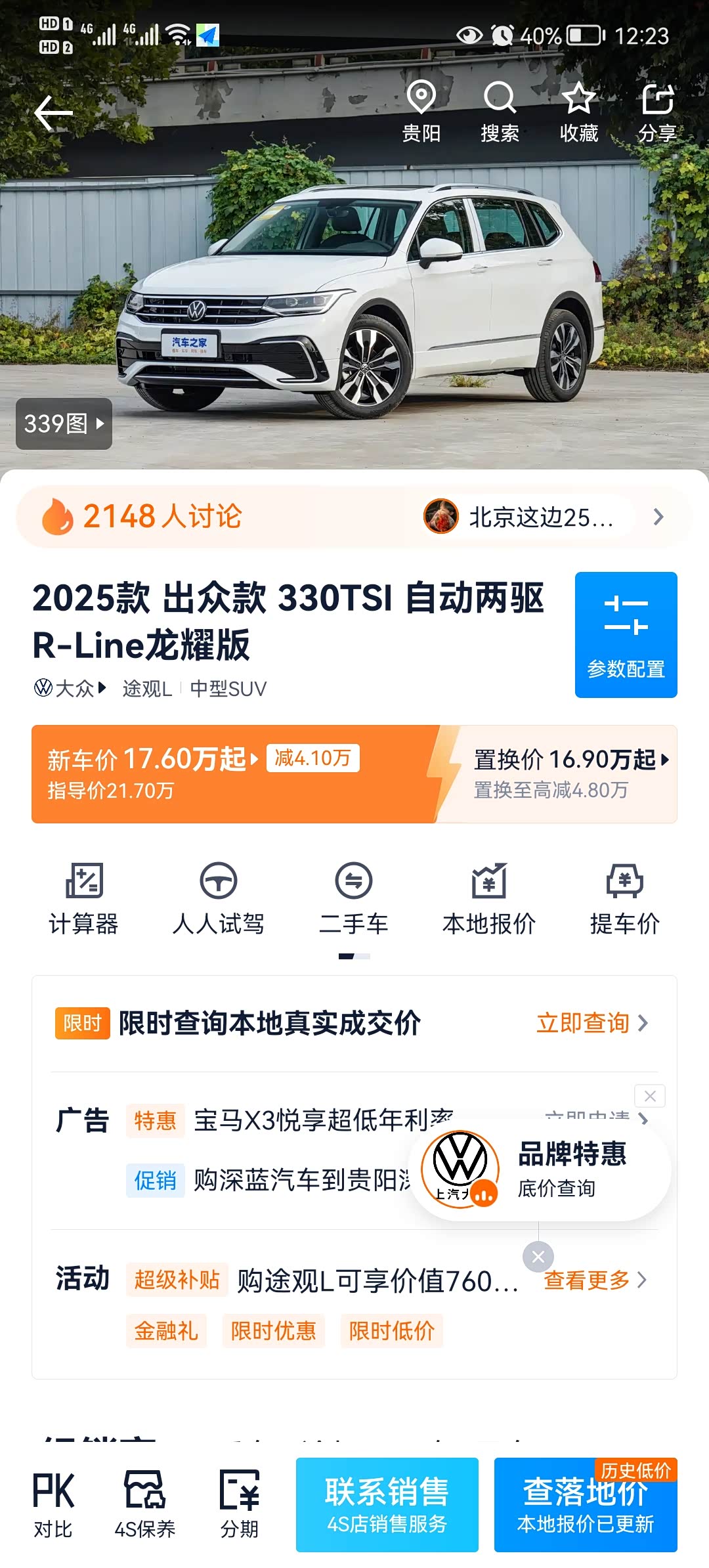 大家给参考下,销售给算的途观L价格,已经谈到最低了,这个价格合适吗?合适我就交钱买车了