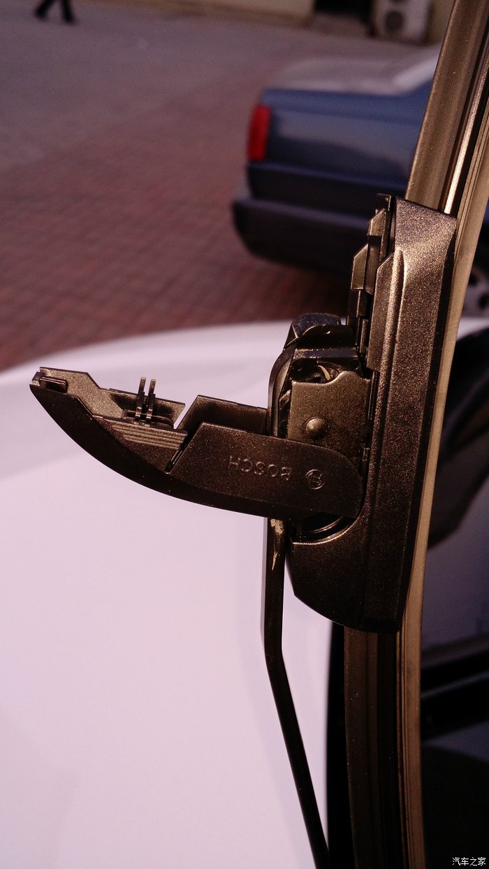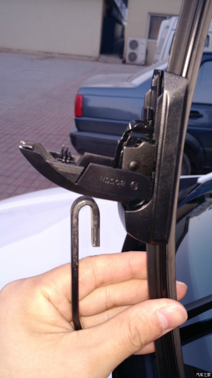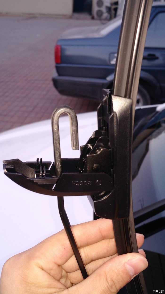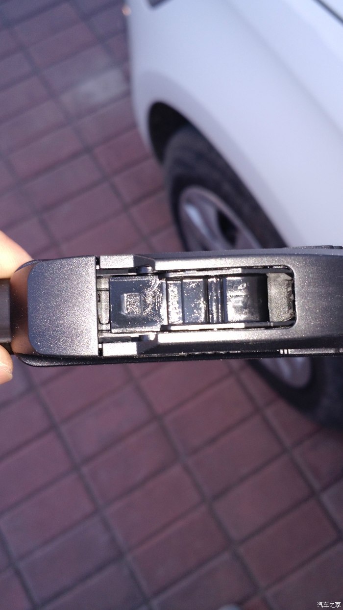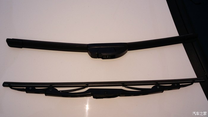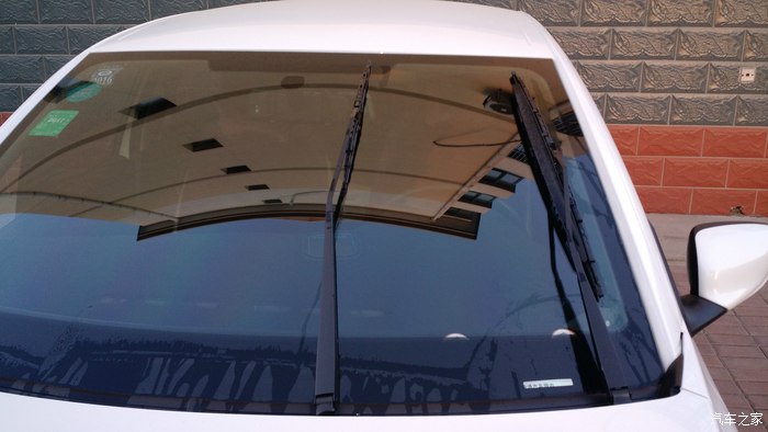 原配的雨刷已经度过了半年的时间了,刚开始的时候还能正常发挥雨刷的功能,但是随着时间和使用次数的增加,明显感觉雨刷力不从心,开始是慢慢的有两三道刷不干净,入冬之后刷不干净的面积逐步增大,到现在基本就是上半面的玻璃全刷不干净了,雨刷胶条本人也经常清洗擦拭,但是还是没有完全解决问题,所以今天换了无骨雨刷,这效果,啧啧啧~~