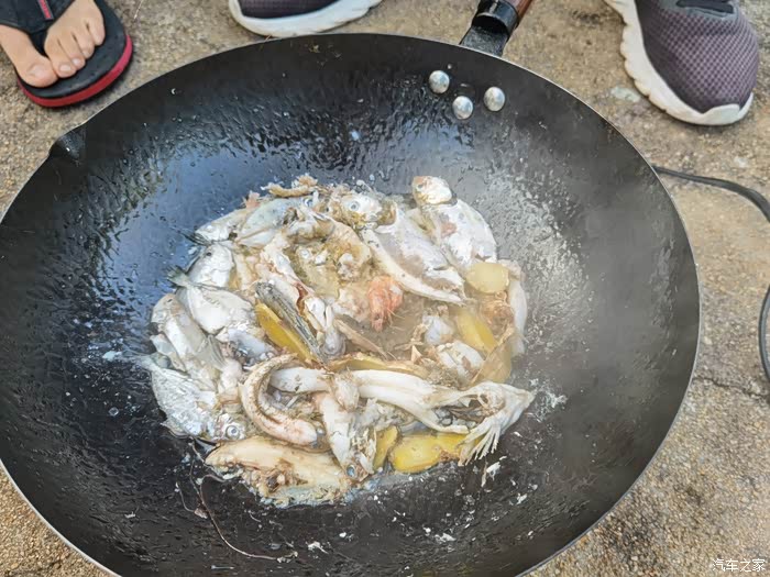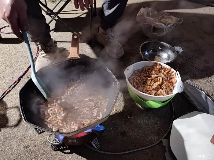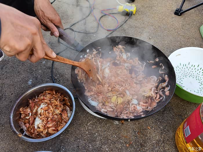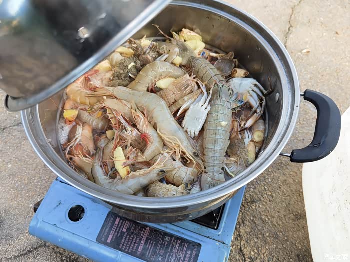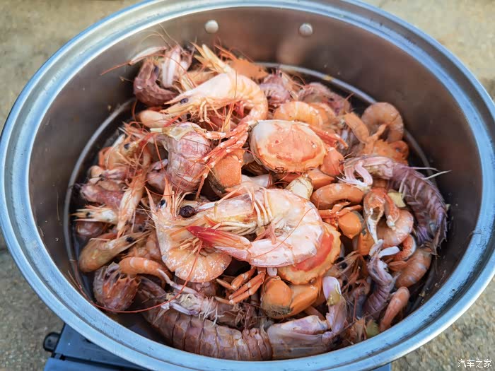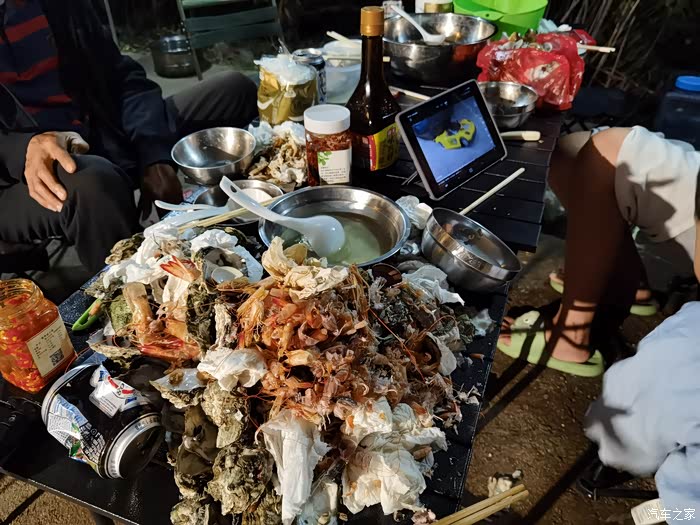 晚上才赶到的云南朋友,今天也一起在这个地方驻车过夜了,除了大虾,最后还弄了三大盆的小虾子,真的不少的东西,我们八九个人吃的饱饱的。