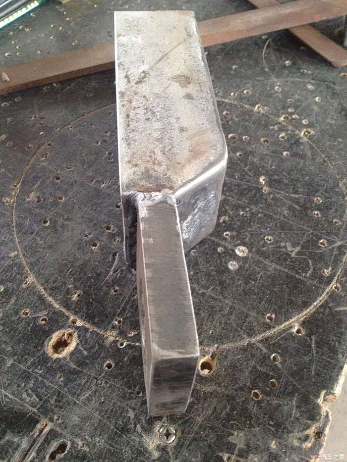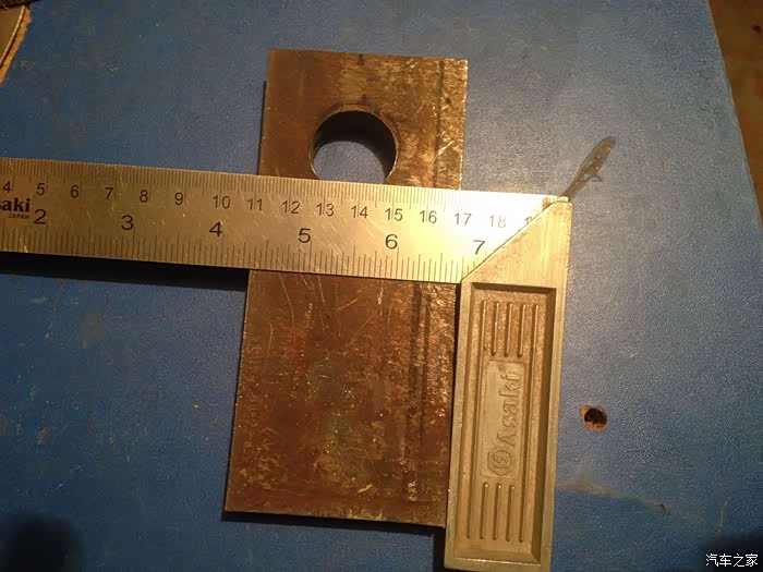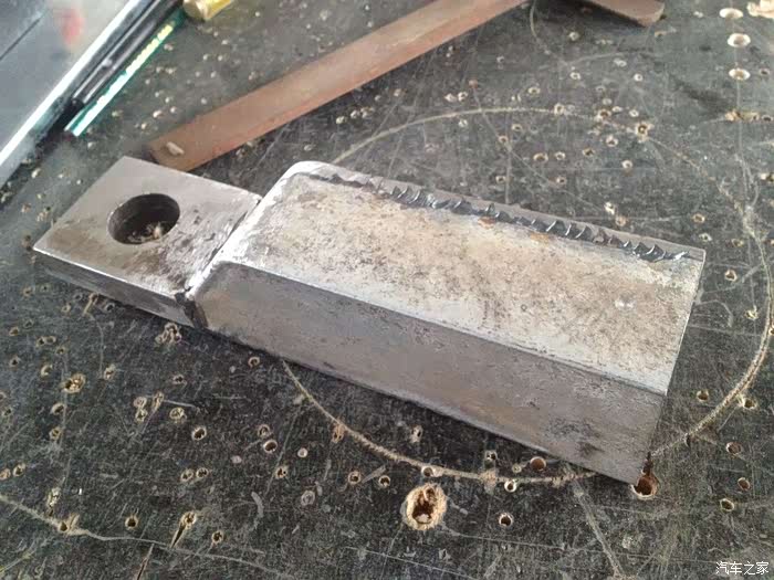 这块钢板很重要,同事帮忙找的,也是同事帮忙找摇臂台钻打的孔!孔的直径是2.6cm,钢板厚度是1.5cm!