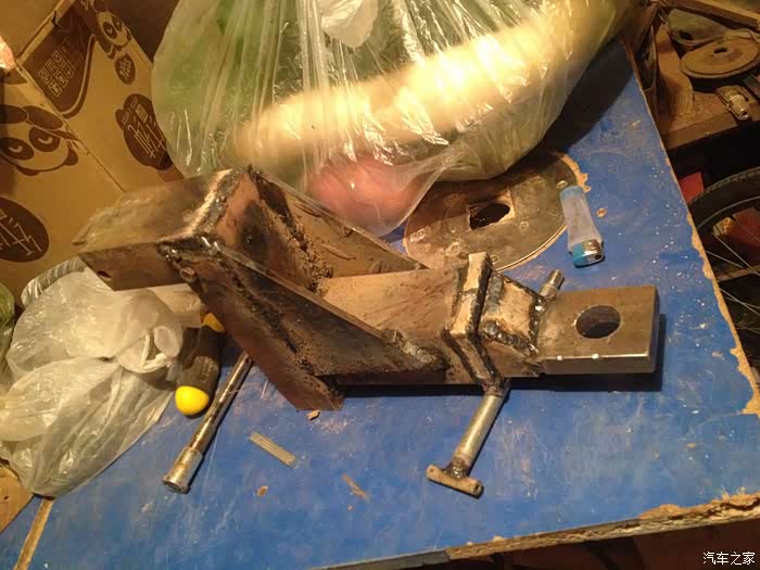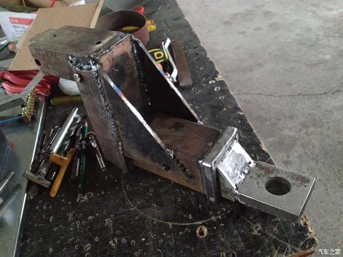 我改装基本都是基于低成本,无损改装的原则,觉得这样更意义一些,所以原料基本都是自己到处找来的,废品站是我的主要收集场所,还有同事也帮忙找了一些,!最后所花成本就是废品站买了两段槽钢,花了12元,在淘宝买了一个拖车球,28元!焊接是找同事帮忙,要求不高,不花钱!由于是利用工作剩余时间做的,所以时间用的久了些,大概前后一个月的时间!