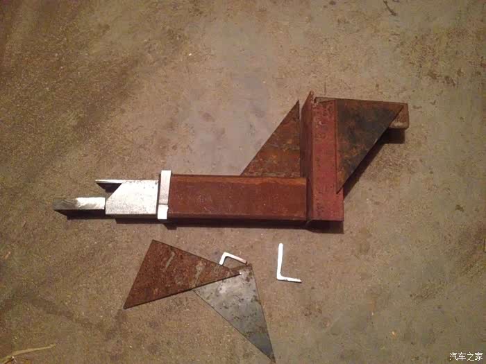 首先,制作的目的,不是基于在实用的基础上,但是也考虑到以后万一可能用的到,所以制作的拖车架还是考虑了一定的使用性!最后决定利用原车的拖车架的底座,原理基础是,原车设计的拖车架应该是可以拖至少1.5吨左右的普通的汽车,所以原车的拖车架应该是有一定强度的,把原车的拖车架去掉,再原车拖车架的底座上扩展一下就成了,制作上应该是不复杂的!趁着天气还没有太冷,说动手就开始干!