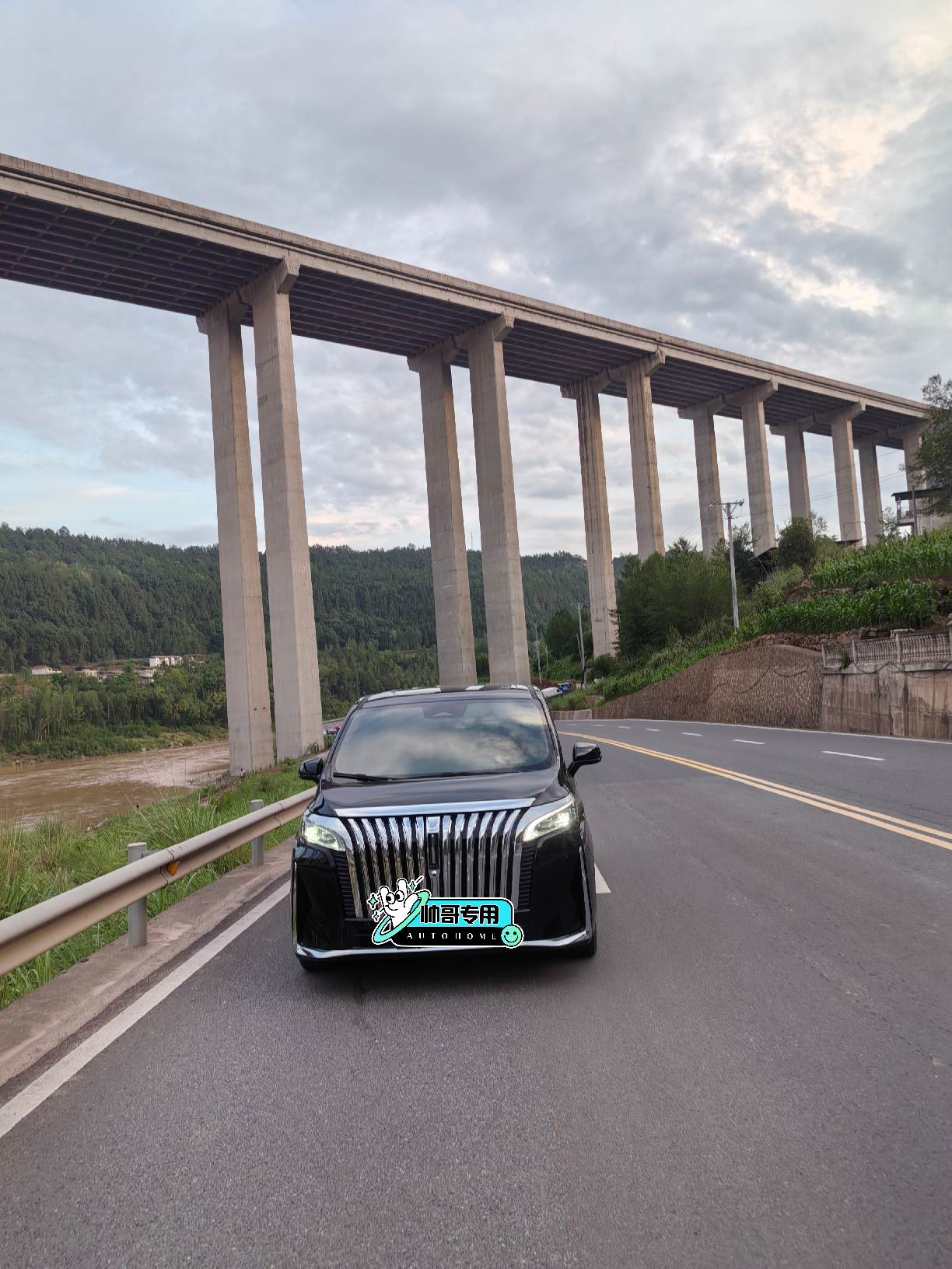 他们终于上车了,5人,女儿一上车就要听歌,自己就让小魏同学搞定了,我与她音乐欣赏风格有代沟了。老婆大人想放松身体就选择了第二排,其他人随便坐。我习惯于打开混动模式。出发了,到了高速收费站,轻踩刹车,高山自带的ETC自动识别,经过匝道,小心点,弯度大。入了主道,打开自适应巡航,车速调到110km,车很平稳,前面需要超车,我拨动按钮,车速瞬间达到125,从最左道超了过去,动力强劲。车上的人有的在看手机,有的在听歌,有的在刷抖音。娱乐屏居然闲着没事干。我打开了空气净化系统,不闷,感觉很好。一向晕车的老婆大人,自从坐上了高山行政再也不晕车了。