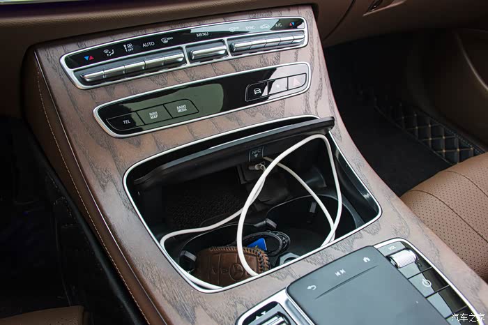 两个杯架里面还有个无线充电,这里我有个疑问有没有E级车主解答一下,这台车是不支持无线carplay的吗?同级别的竞品五系包括A6都是支持无线carplay的,但E级我没有使用出来,并且这台车插线的话只能插Type-C,虽然Type-C是未来的主流,但是它连一个USB接口都没留是不是有点说不过去,就像那天我的包里只带了USB就导致我的carplay用不了。