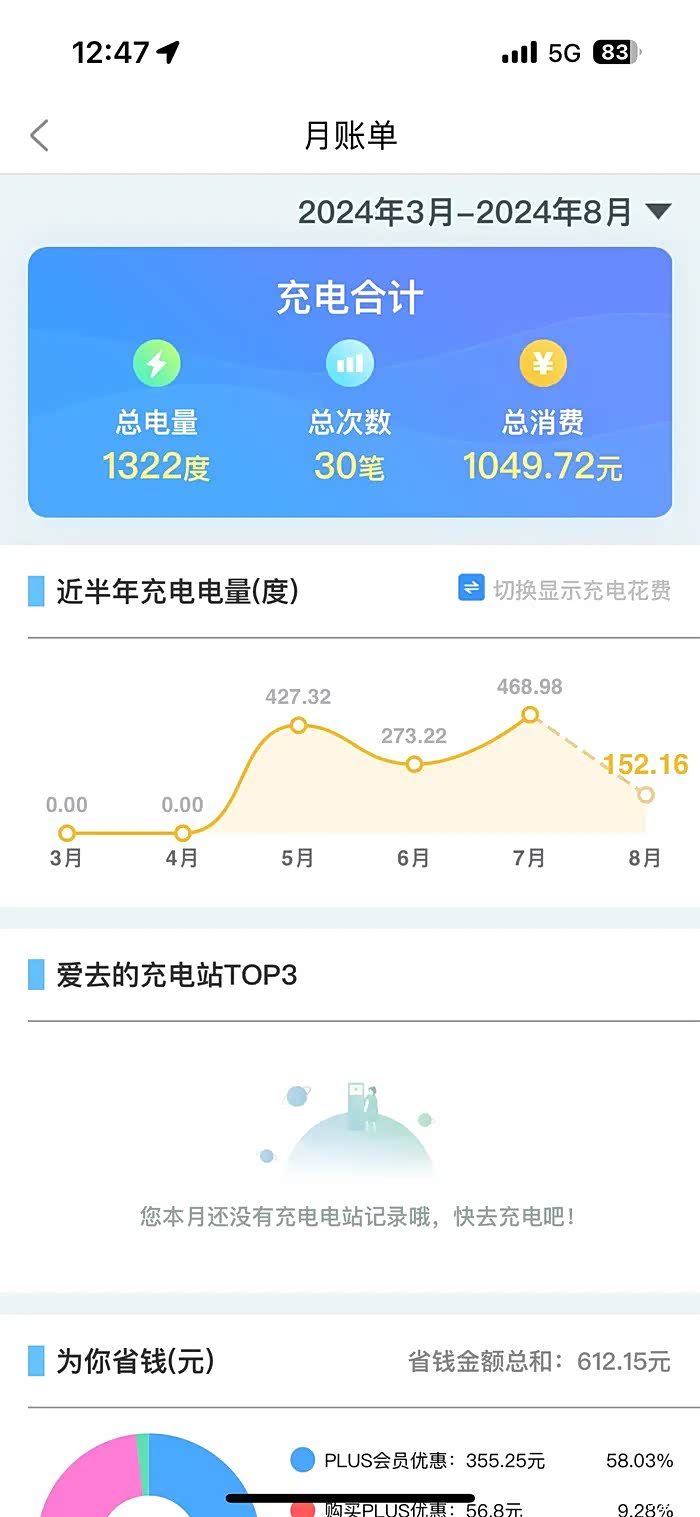 成本其实用起来还是非常低的,保险4900,包含车损,200万的三者,医保外用药共享保额,贷款6万,走的厂家金融,两年免息,目前综合电耗大概12.5度/100公里,算起来如果家充的话几分钱一公里,但是我在外打工,没有家充,主要在外边快充,目前总共充了1000块钱左右,跑了将近9000公里,1毛多一公里,相对还是很省钱的,维修首保是免费的,二保还没去,看群友去保养的大概200来块钱,电车其实没什么保养的,整体用车成本比较低的