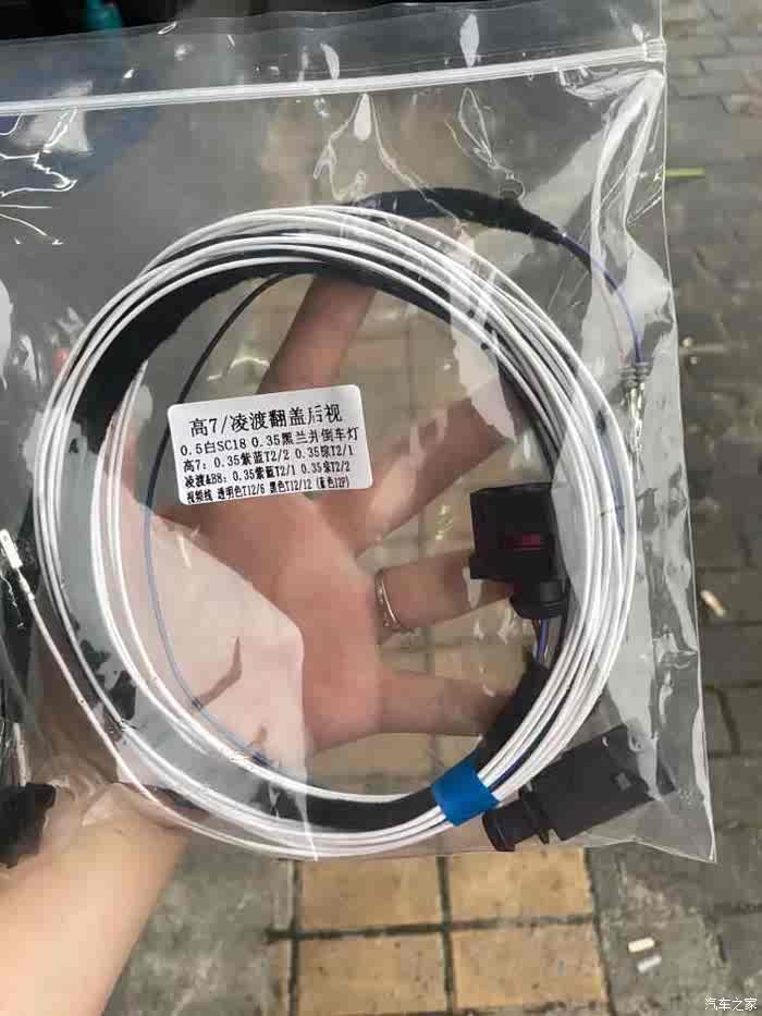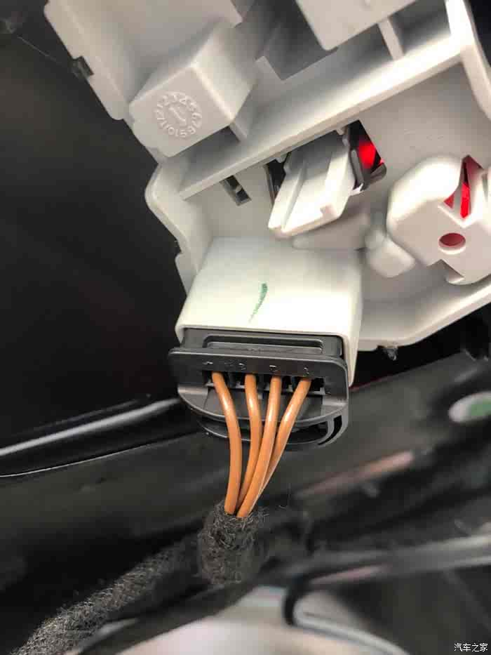 维修翻标期间突然发现,更换翻标后,原厂线束是两根插针的,但是翻标是四根插针,于是赶紧求助万能的TB,淘来了转接线,根据大神发帖,记住了四根线的功能,另外还买了测电笔、取电器、保险等比不可少的小物件,趁着周末,胸有成竹的拆下后背箱内衬板,开始安装穿线,安装很简单,拆下原车标直接按就行,穿线整整一天时间,前面部分到时候很好穿(走的顶棚),到C柱的时候很是头疼,死活穿不过去,研究了一下原车线束,后来没办法,从B柱开始向下走地板穿到背箱,终于完成。