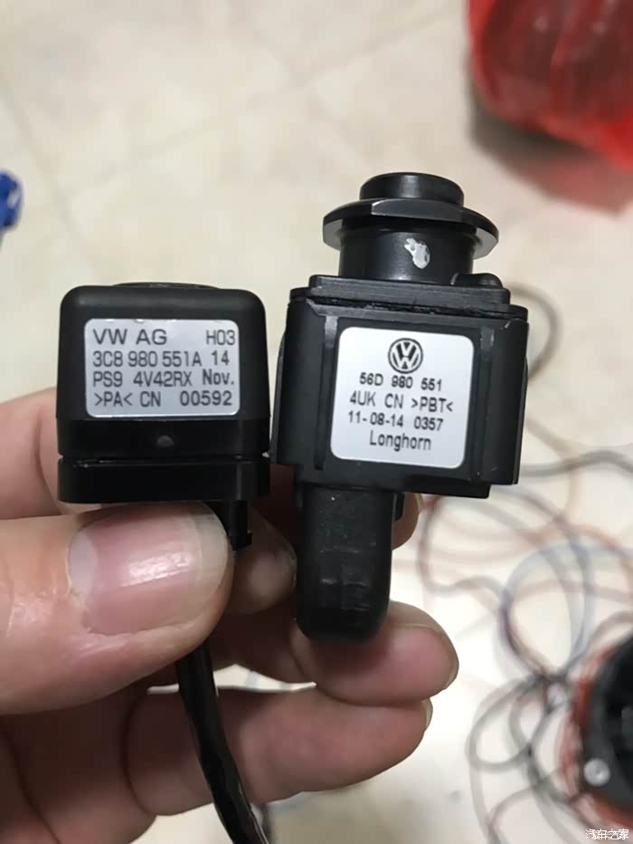 还需要等我的摄像头,苦苦等待,因为之前看见大神“mastershen”更换过RGB摄像头,个人觉着应该能搞定,所以就买了,收到货后悲剧了,手扣的rgb摄像头太大了,需要打磨接近1/3,再三考虑还是放弃了,因为这个摄像头可不便宜,打磨坏了损失就大了,稳妥起见在TB上面买了一个国产的翻标里面的摄像头,尺寸差别不太大,但仍需打磨(在这里感谢TB卖家给测量尺寸,提供了技术支持),棱角弧度打磨了一点就能装进去了,但是还是太长了,用了近一个小时后面打磨了近两毫米,已经快透了,用黑色玻璃胶密封了一下,上车在保险盒上面测试了一下,按照大神的方法和店家的指导改了几个编码,可以使用,装进翻标里面,涂抹上润滑油,一切OK,加电测试翻标,大功告成!