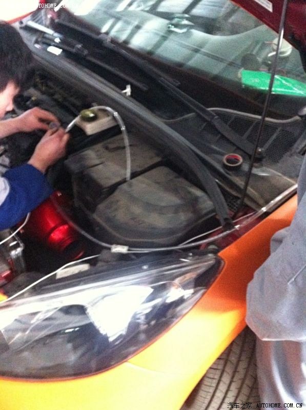 开始在发动机舱安装真空表所需的真空管