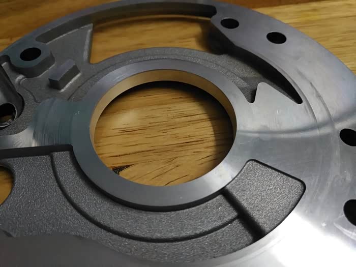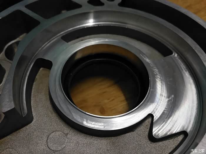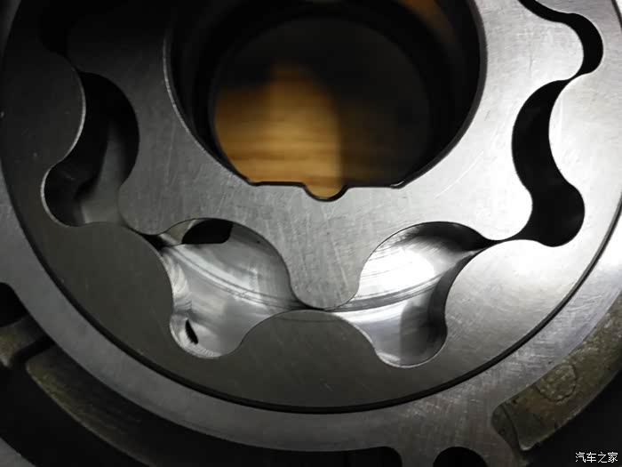 机油泵外壳,端面有摩擦痕迹,不是很深,但会导致高低压油腔之间泄漏,高压润滑油会将转子向端面的一侧挤压,由于转子泵低转速的时候油压是波动的,波动的压力周期性的的挤压转子端面,猜想会不会是这里产生的噪音?