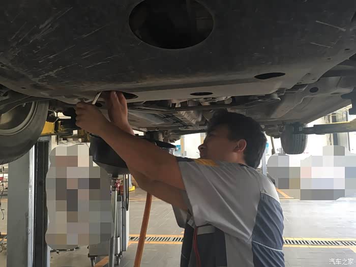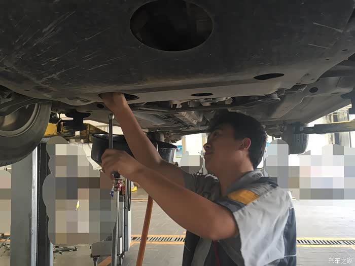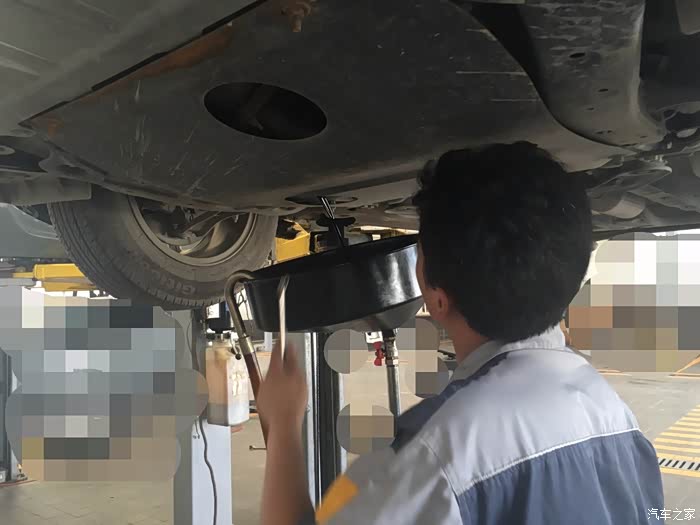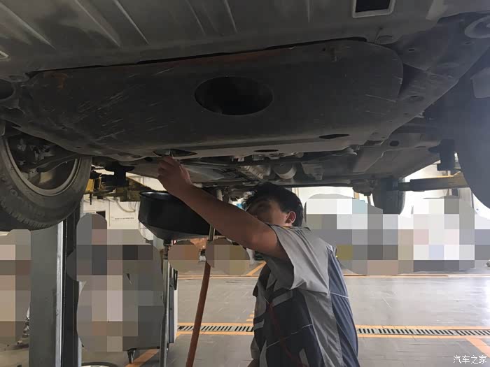 开始更换机油,换前准备!机修师傅很热情,一边保养一边给介绍一些注意事项!