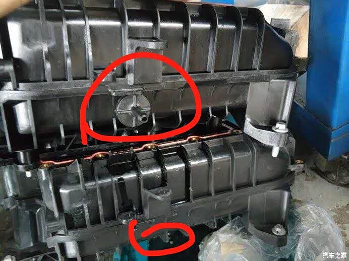 拆掉节气门清晰的看到进气歧管里都是机油↓↓↓↓