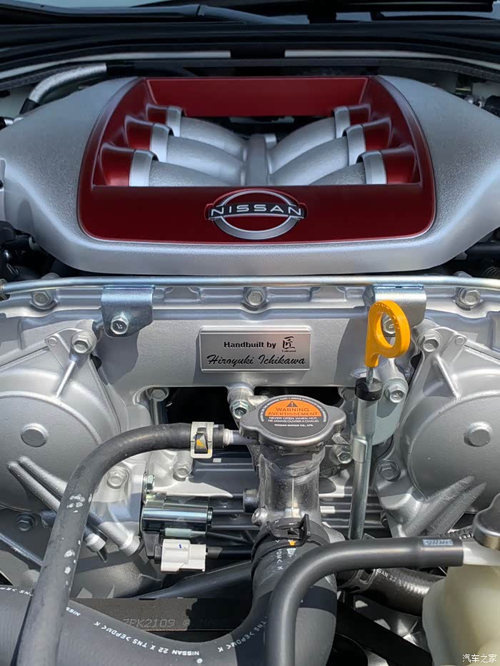 打开这台GTR的机舱,能看到这款车型里面搭载的一个强劲的发动机,这款是4.0涡轮增压发动机还有与之搭配的AT变速箱也是非常不错的一个动力组合系统!
