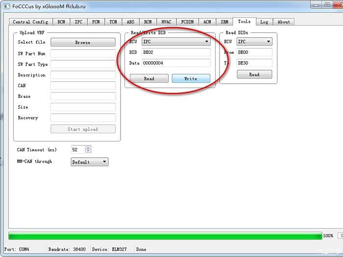 DID填写DE02,点击Read