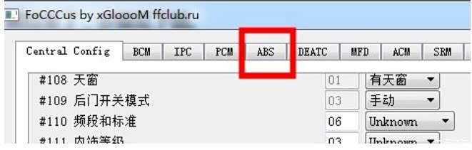 回到FOCCCUS软件界面,选择最上面一排的第五个标签ABS。