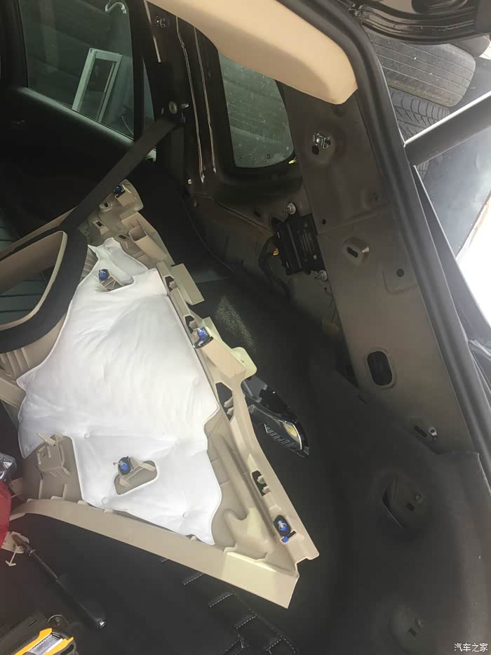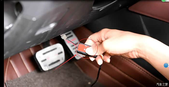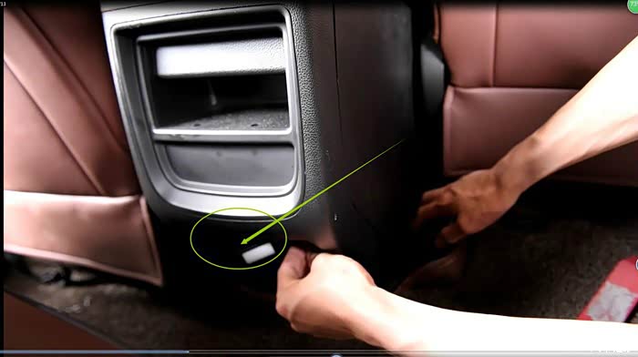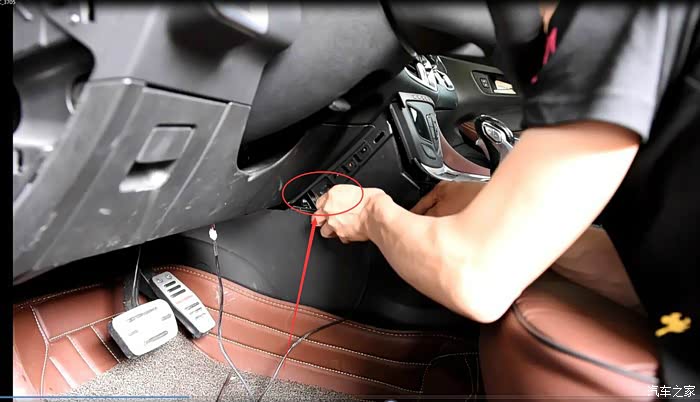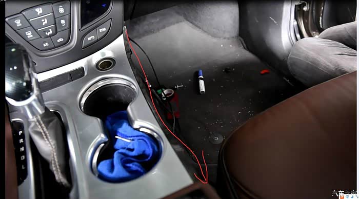 这个我也捣鼓了好长时间,因为要从中控里面传过去,后来明白了,首先要将中控棕色皮质的翘下来,在翘图片花圈那个板,主驾副驾两边都要翘,翘完后从中穿线就行,线要用1.5M的那根