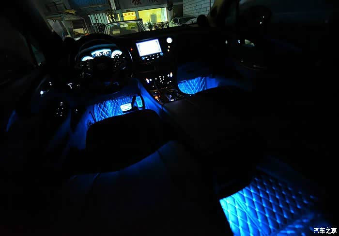 穿线后安装上灯,再安2M线,我是把线往前走压进脚垫后从下图的缝中穿到后排