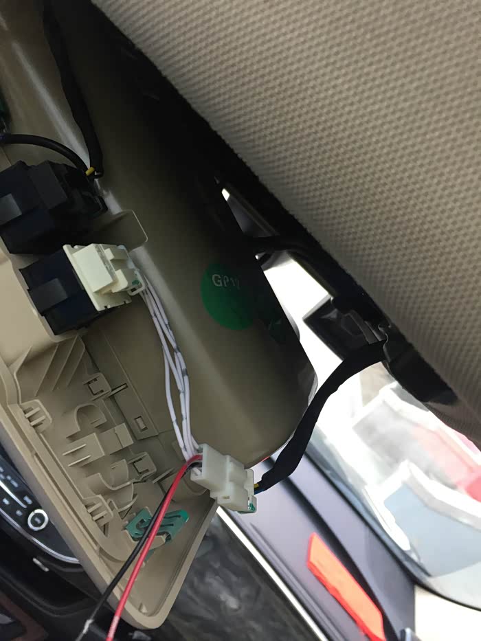 拆阅读灯,买氛围灯的时候跟卖家要个翘的工具就行,easy。下一步我跟大威V5做的不一样,原因是线要从洞里面左侧穿到A柱的位置,发现太难搞,我的方法是将遮阳板上方用翘板翘起缝隙,从从缝隙中穿过进图到阅读灯位置。