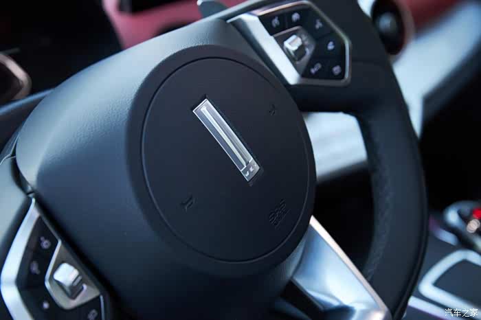 多功能方向盘手感不错,中间还有WEY品牌的标志。