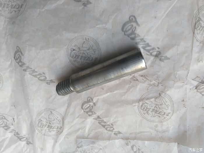 导向销真身,很脏,原来的油已干且很粘,拉动也不顺畅,还好没锈蚀,有油污那头抹洗都不行,只能用砂纸磨。虽然刹车没明显的噪音和太敏感,回位还可以,但估计很快就会出问题。