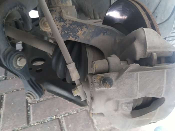 半轴胶套完好,没有破损漏油。 各个球头也上下左右都拉动了下,没松动的迹象。
