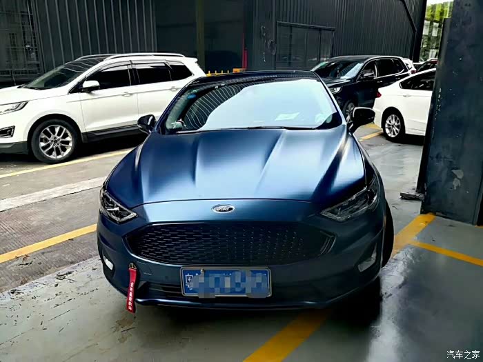 福特新蒙迪欧,车身贴膜改色,中网改网格进气格栅,全黑车顶,车尾加装黑色旋风小尾翼