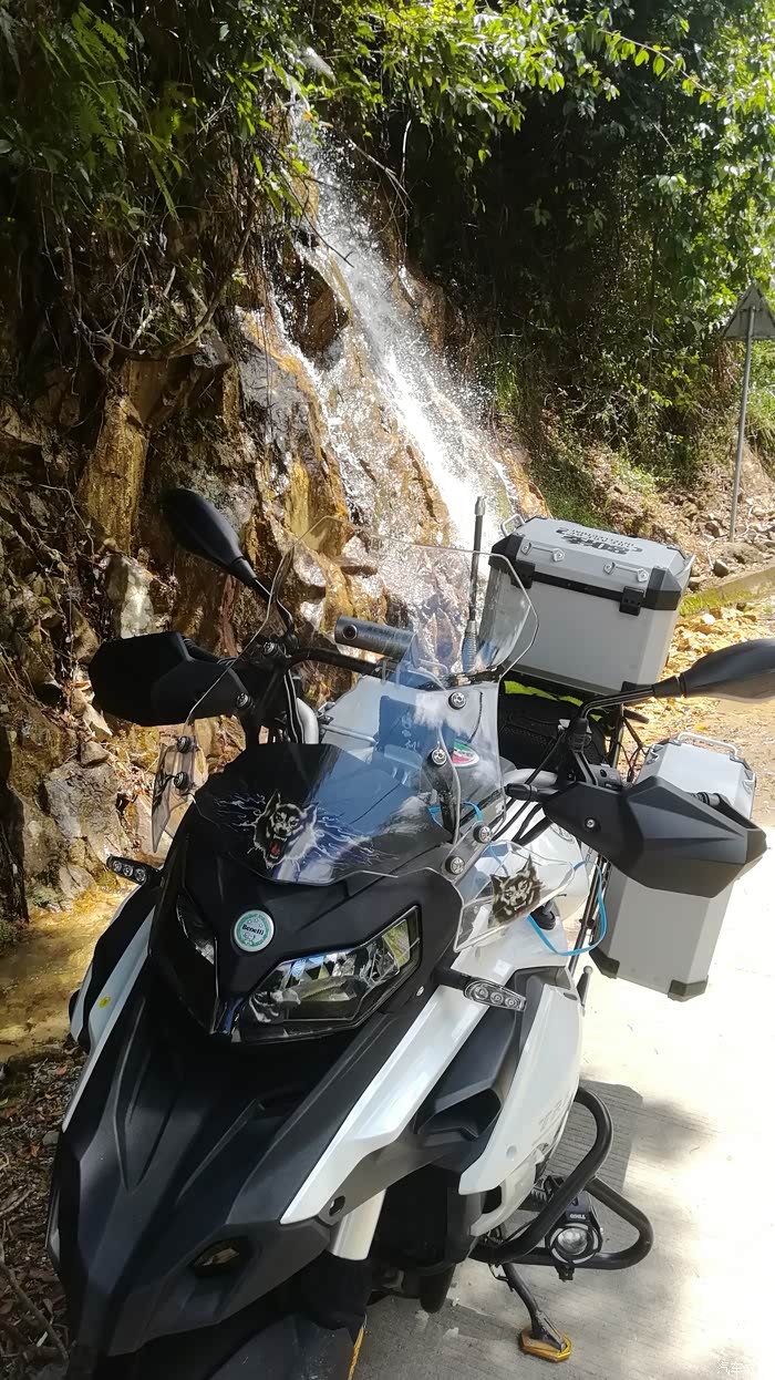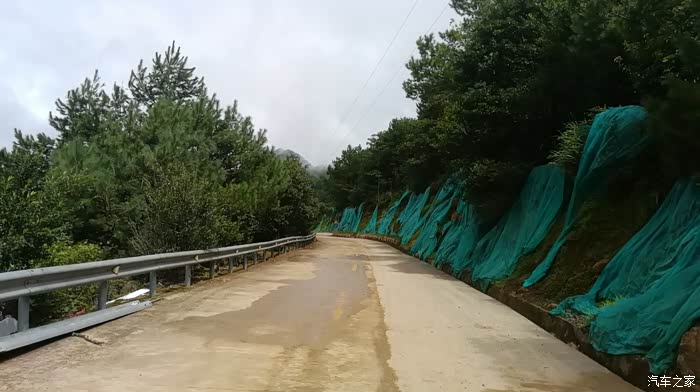 只能放弃了,寻找下一个目标,开始下山了,上山一条路,下山时另一条路,这个山路不像人家说的【上山容易下山难,这个是下山容易上山难】下山的路比上山的路好走多了。下山的比较宽大,没那么滑,上山的路真的很难走,没什么车上山,只有工地的几辆车上山,路中间有沙子,容易滑,边边因为常年潮湿长青苔了。下山的路没有那么难走,没有沙子青苔什么的。石牛山看风景是失败了,石牛山失败了本来打算转到岱仙瀑布的,运气也太差了吧,岱仙瀑布也在修景区大门,也没法进去,靠,只能返程回家了,计划的两天,也没心情了,还是回家上班赚钱吧。但是路上的风景也不错。到了下午返程的时候下大雨,暴雨的那种,在山上没地方躲雨,只能硬着头皮骑,到了半山遇到一个卖水果的瓜棚,进去躲了雨,顺便把雨衣也穿上。