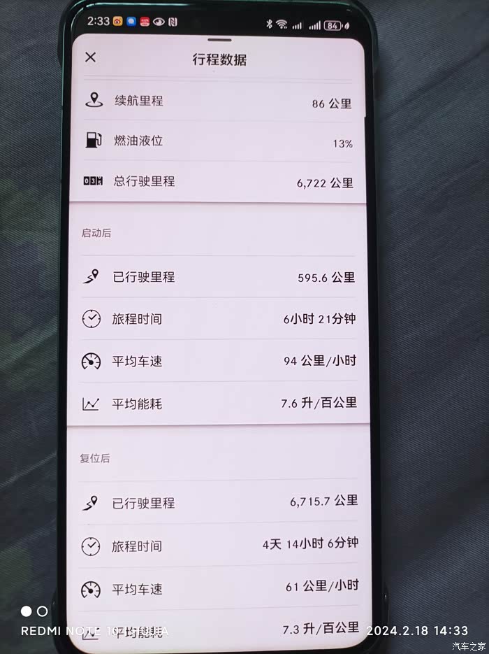2:现在综合油耗7.3升,最低高速油耗6.4升,最高城市油耗13升多。