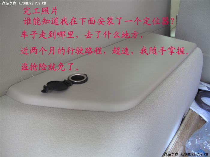 最后把线捆扎,也固定在地板上,把点烟器的线也接上,盖上面板,完工大吉。