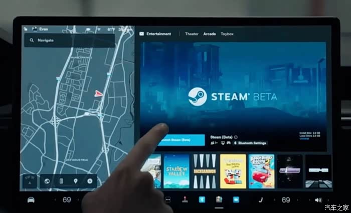同时机甲龙还有多维娱乐系统,其实汽车能够玩游戏这个我之前就听说过,特斯拉的车机能够支持主机游戏,但是后来了解了一下,特斯拉只有搭配16GB DDR内存的Mode S和X的车型才能够支持游玩3A大作,而且并不是所有的steam上的游戏都能够玩,只支持游玩steam deck验证的游戏,这样局限性一下子就大了很多。