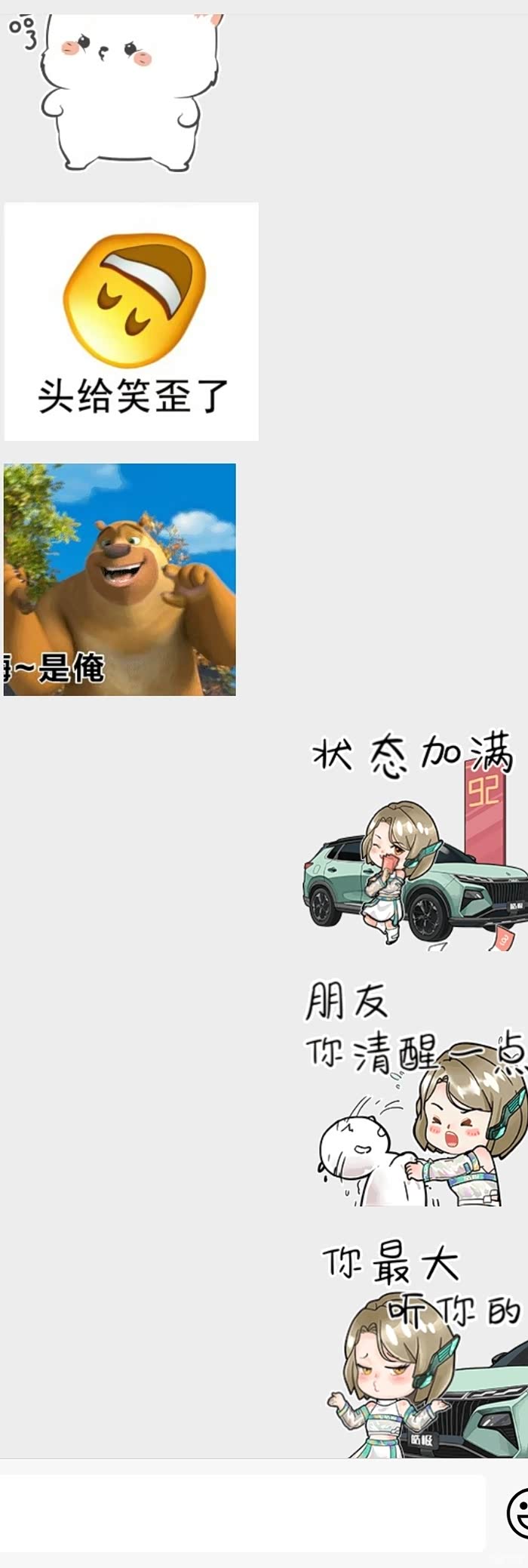 给友友聊天加上这些斗图就会突然觉得很有意思,今天给大侄子聊天用了两个表情包,大侄子就也发起了斗图,我们俩就开启了斗图模式,表情包可以让聊天更加高效率,一个图就能代表一句话,也能传递对方的心情,意境,更加有意思!