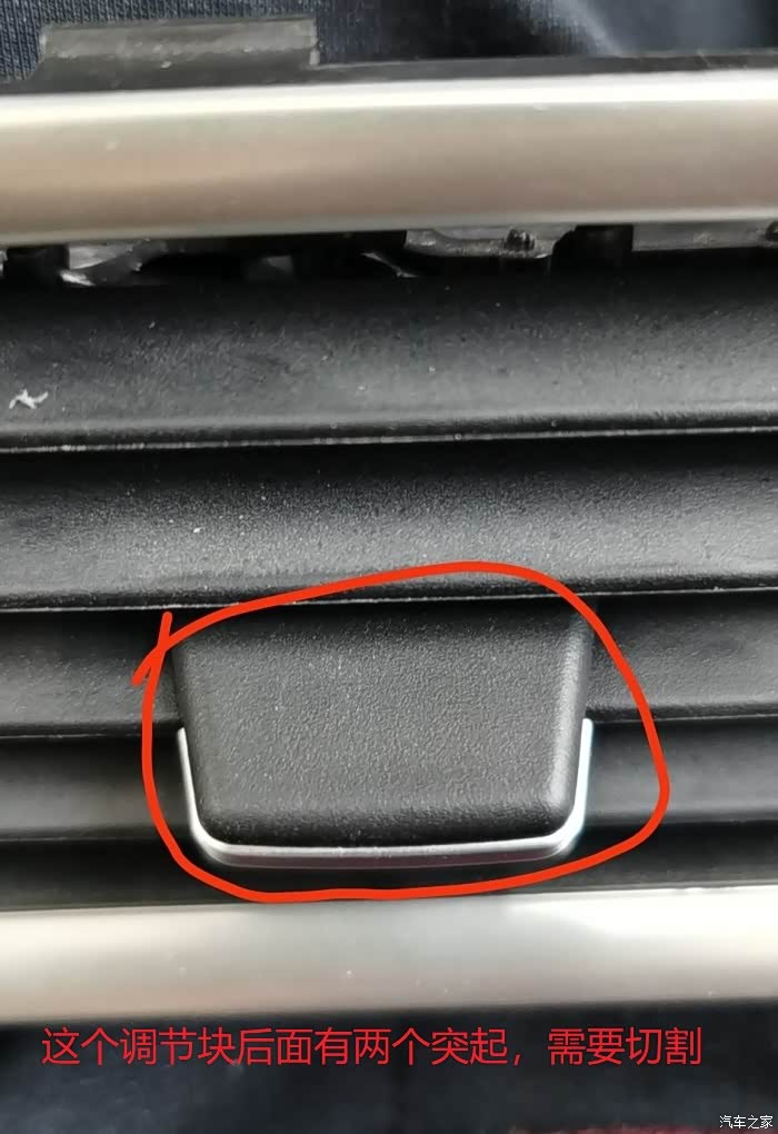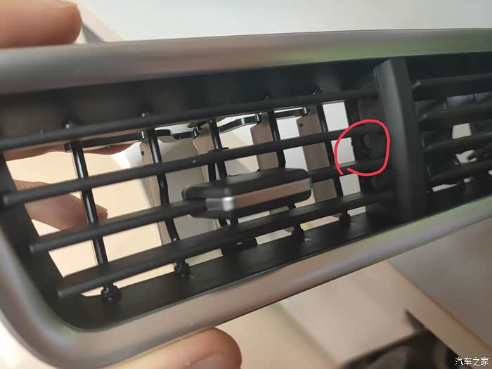 M4后排出风口可调节角度小,导致第三排不能吹到风,夏天没那么凉快!之前有其它车友研究过,拆了处理效果不明显。这里有空拆下来,研究研究一下了限位机构,发现有可以操作的空间,效果还不错,之前他们应该没处理到正面的限位块,具体如下